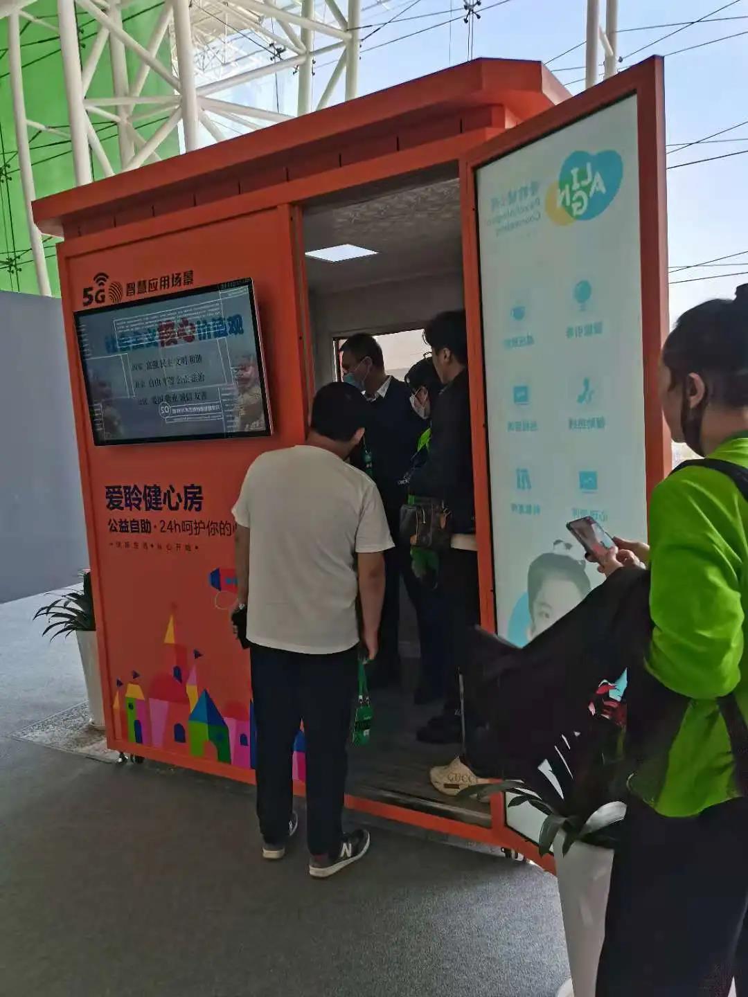 在展会主办方的直播环节,公司专业人员与直播员密切互动,全面介绍了云平台和心理援助终端“爱聆健康小屋”的具体情况。现场不断有好奇的观众纷纷进入小屋体验,直呼过瘾。