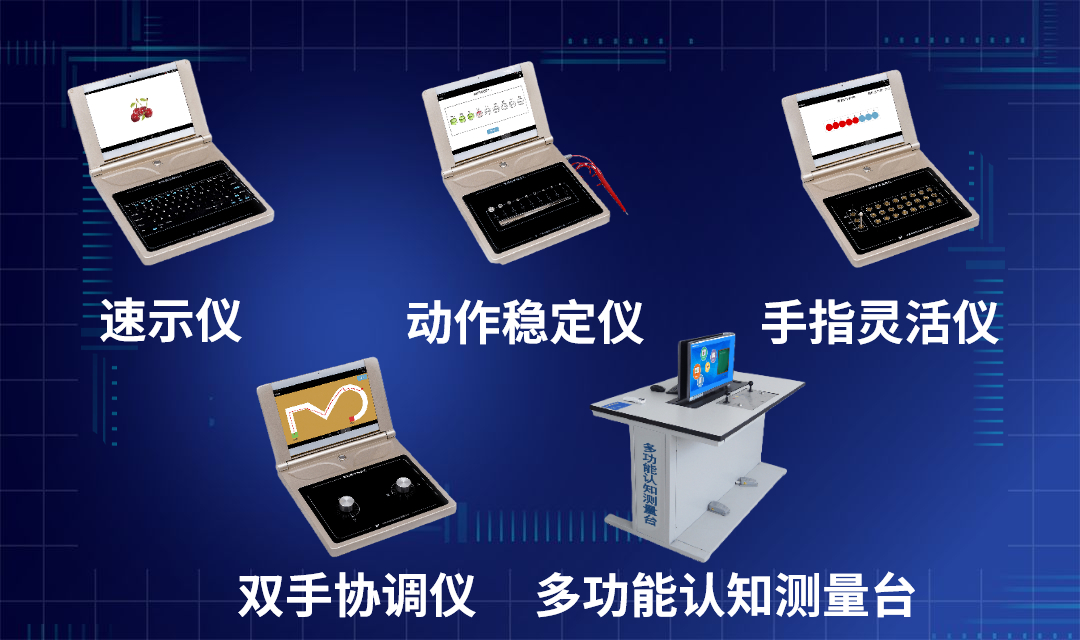 此外,还有锻炼记忆力和注意力的速示仪,训练动作稳定性的动作稳定仪,用于手指灵活性和手眼协调能力锻炼的手指灵活仪,锻炼注意分配能力和双手协调能力的双手协调仪,以及包含多个类型专业心理量表的多功能认知测量台。