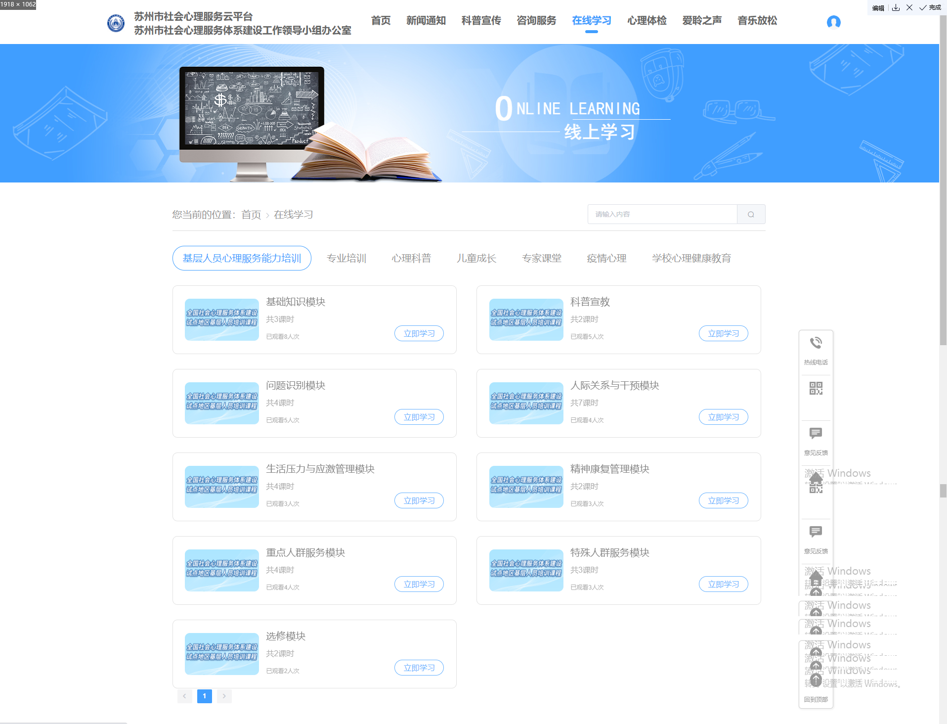 目前江苏卓顿建设的社心云平台上,已经有苏州市、邳州市、兴化市、丹阳市、灌云县以及黑龙江牡丹江市的社会心理服务云平台上传了培训课件,当地基层社会心理工作者可以选择观看视频学习。